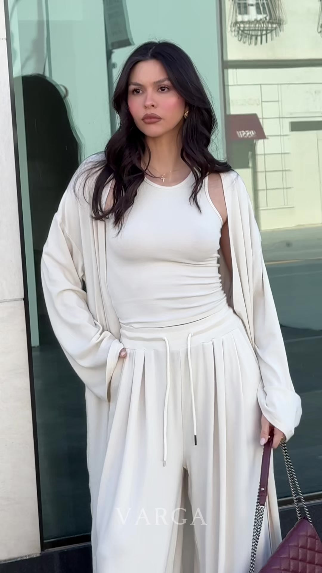 Experience ultimate comfort and elegance with our premium cotton LINA Set, featuring a kimono, a top, and relaxed-fit trousers.